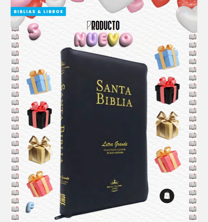 Descripción: tapas imitación de cuero con cierre , concordancia ,canto dorado , pag 1440 , medidas 15 x 23 , palabras de Jesús en rojo , versión Reyna Valera, letra grande.