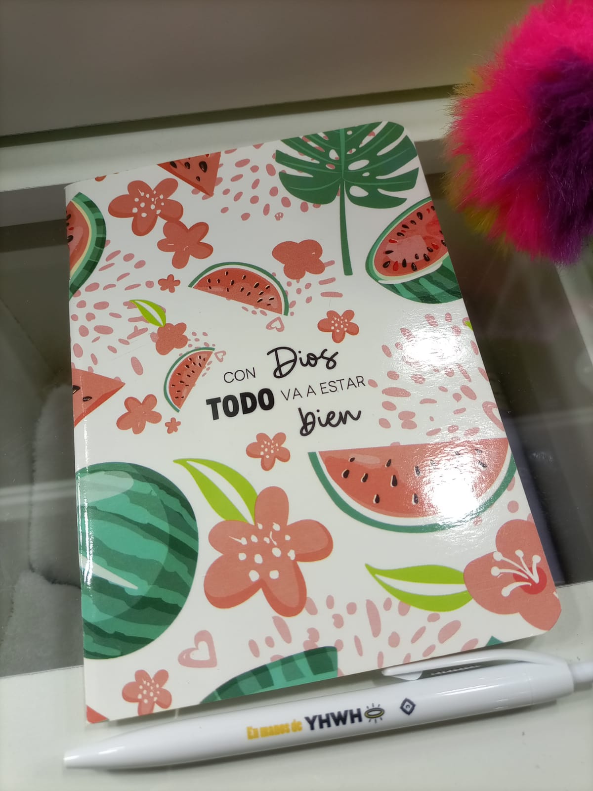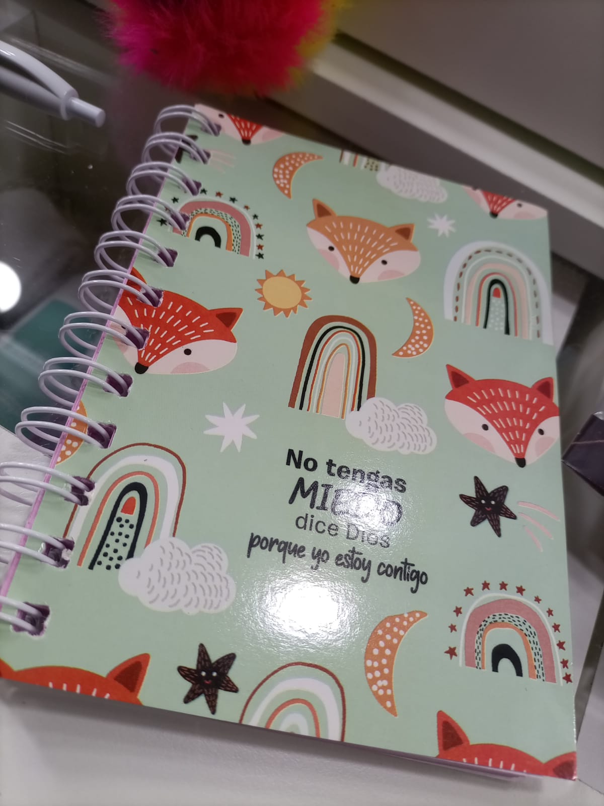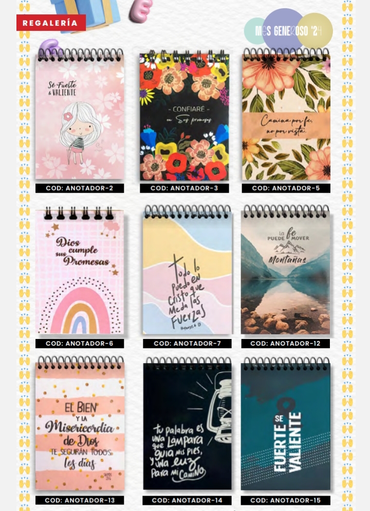 Descripción: 95 hojas rayadas anillado, hojas a color, tapa flexible, con frase en cada hoja, medidas 16x11