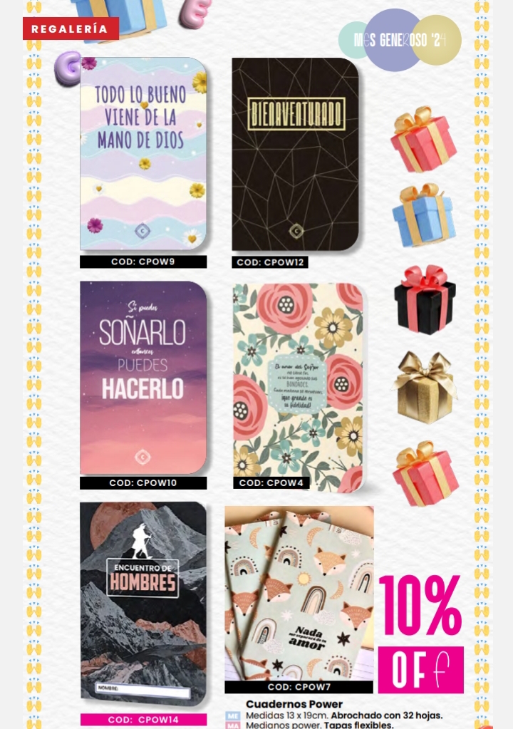 Descripción: 9.5x14 - 50hojas rayadas. tapa flexible con frase en cada hoja.